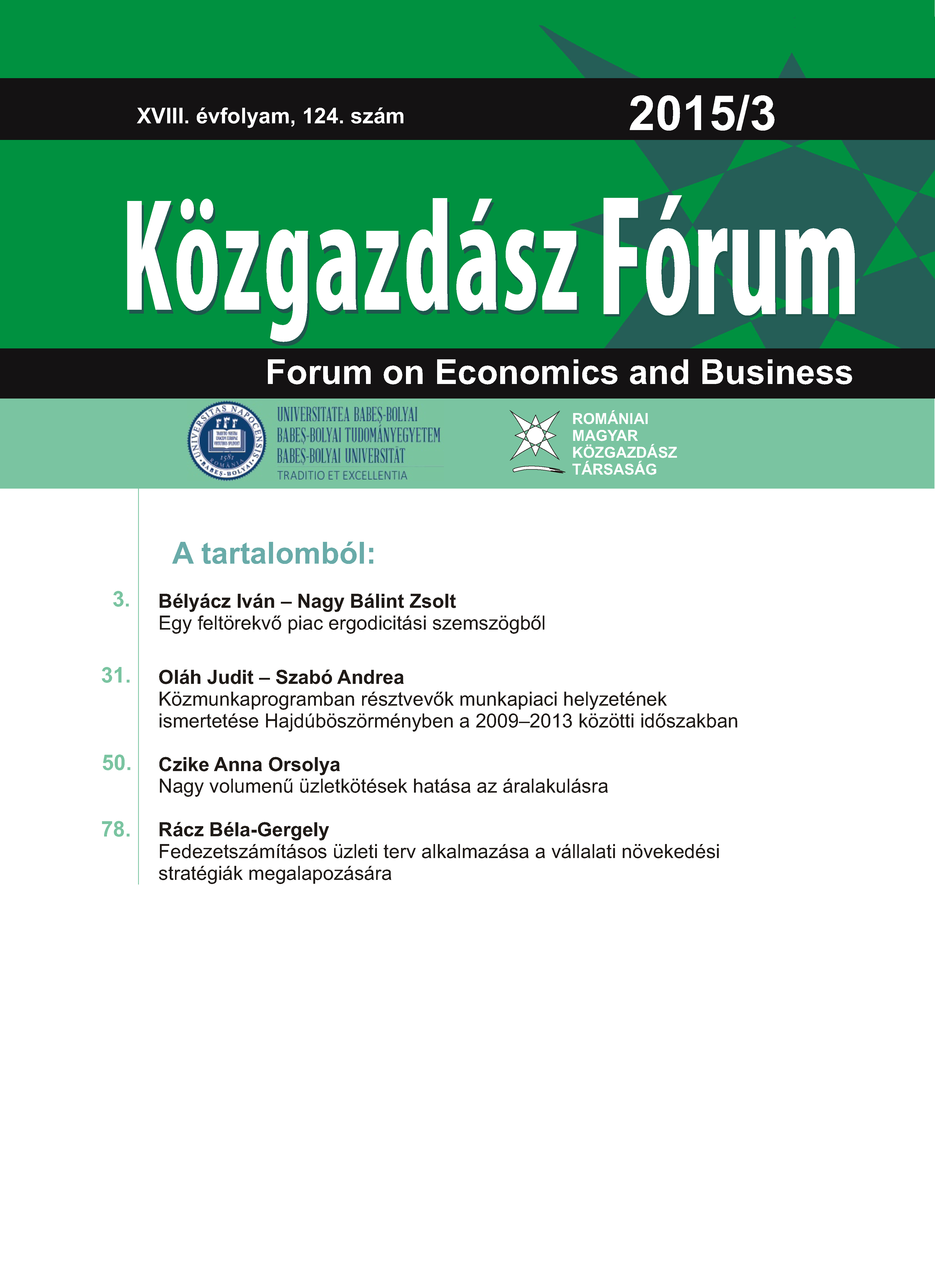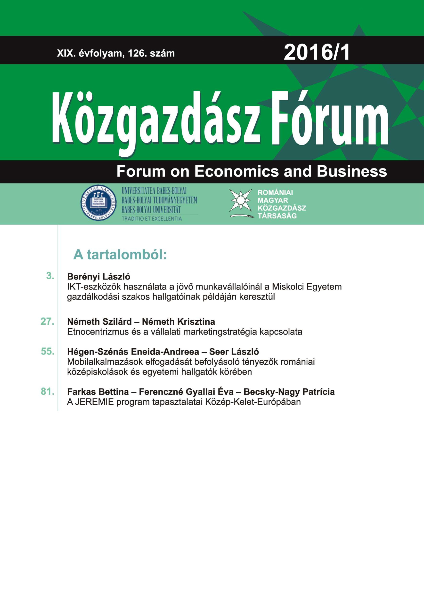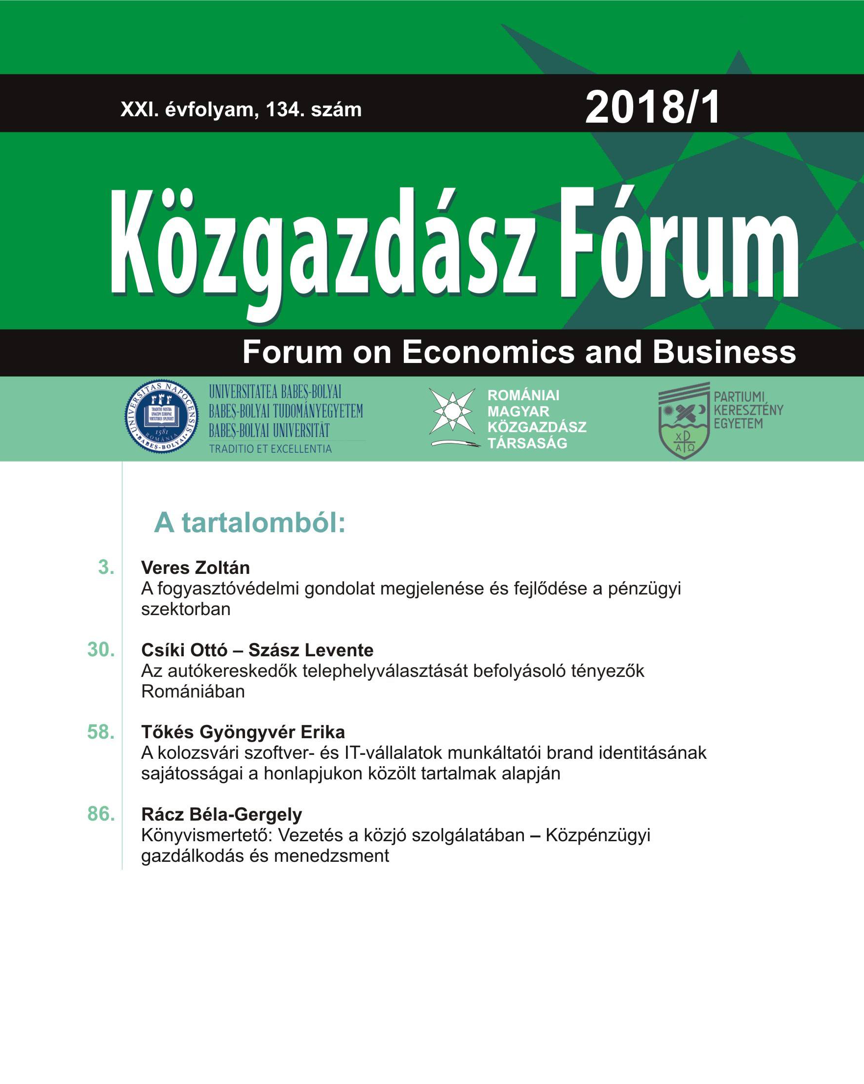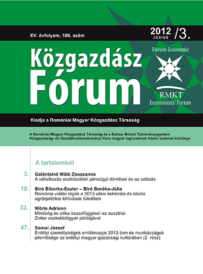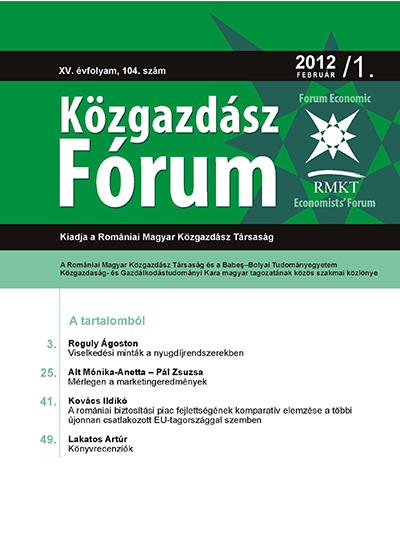 © Közgazdász Fórum | ISSN: 1582-1986