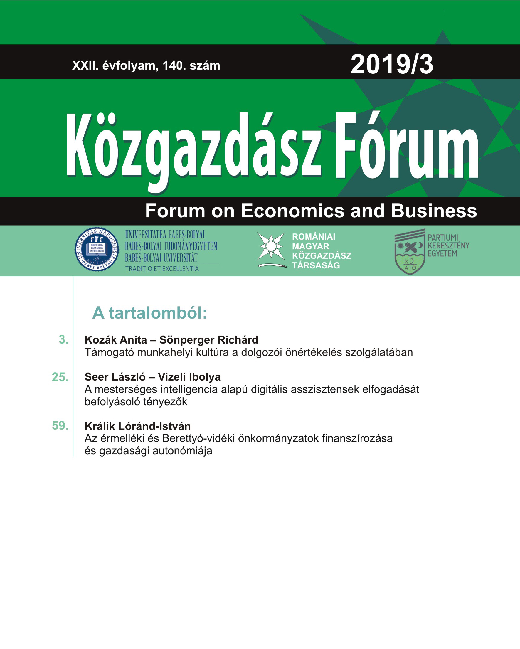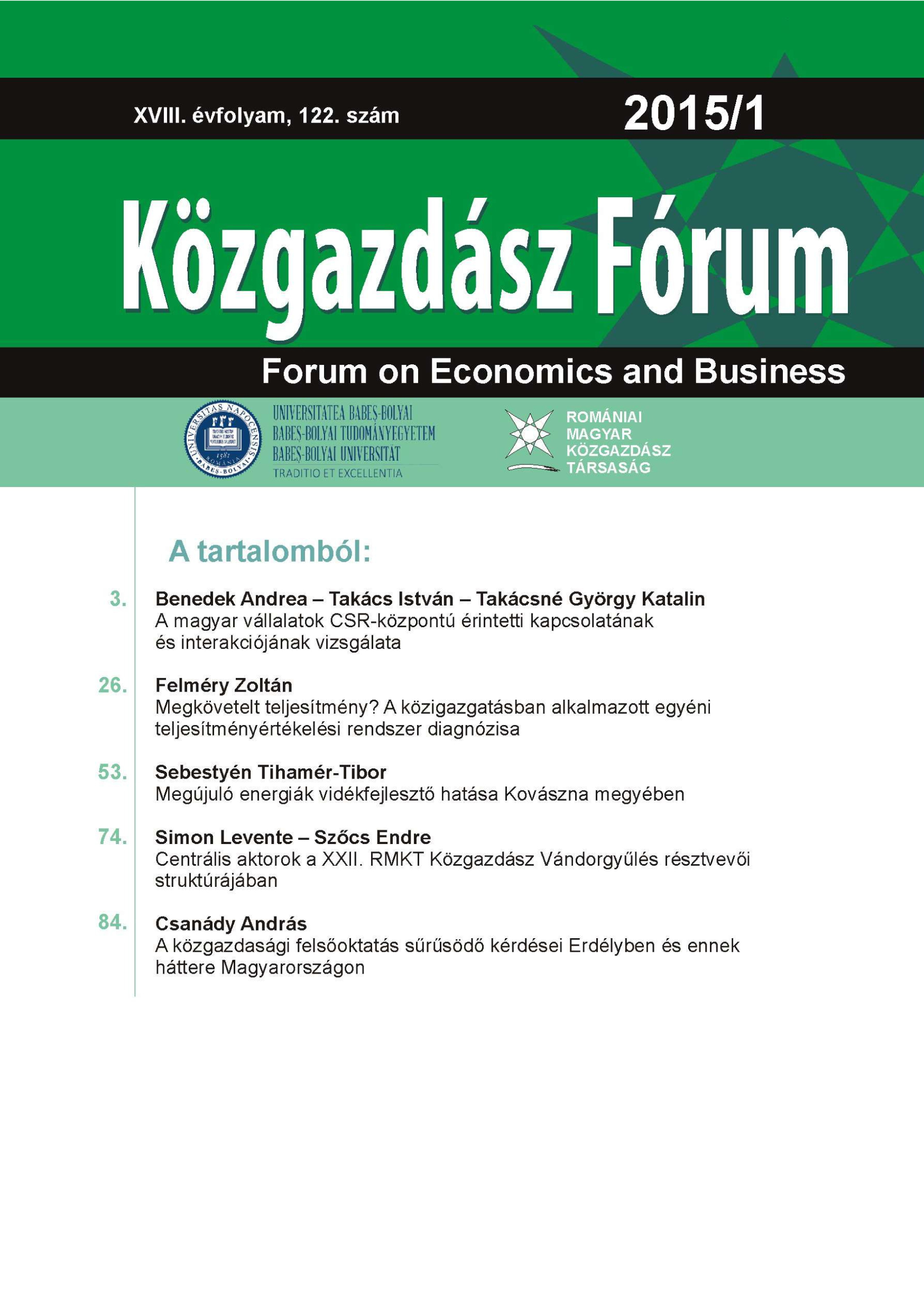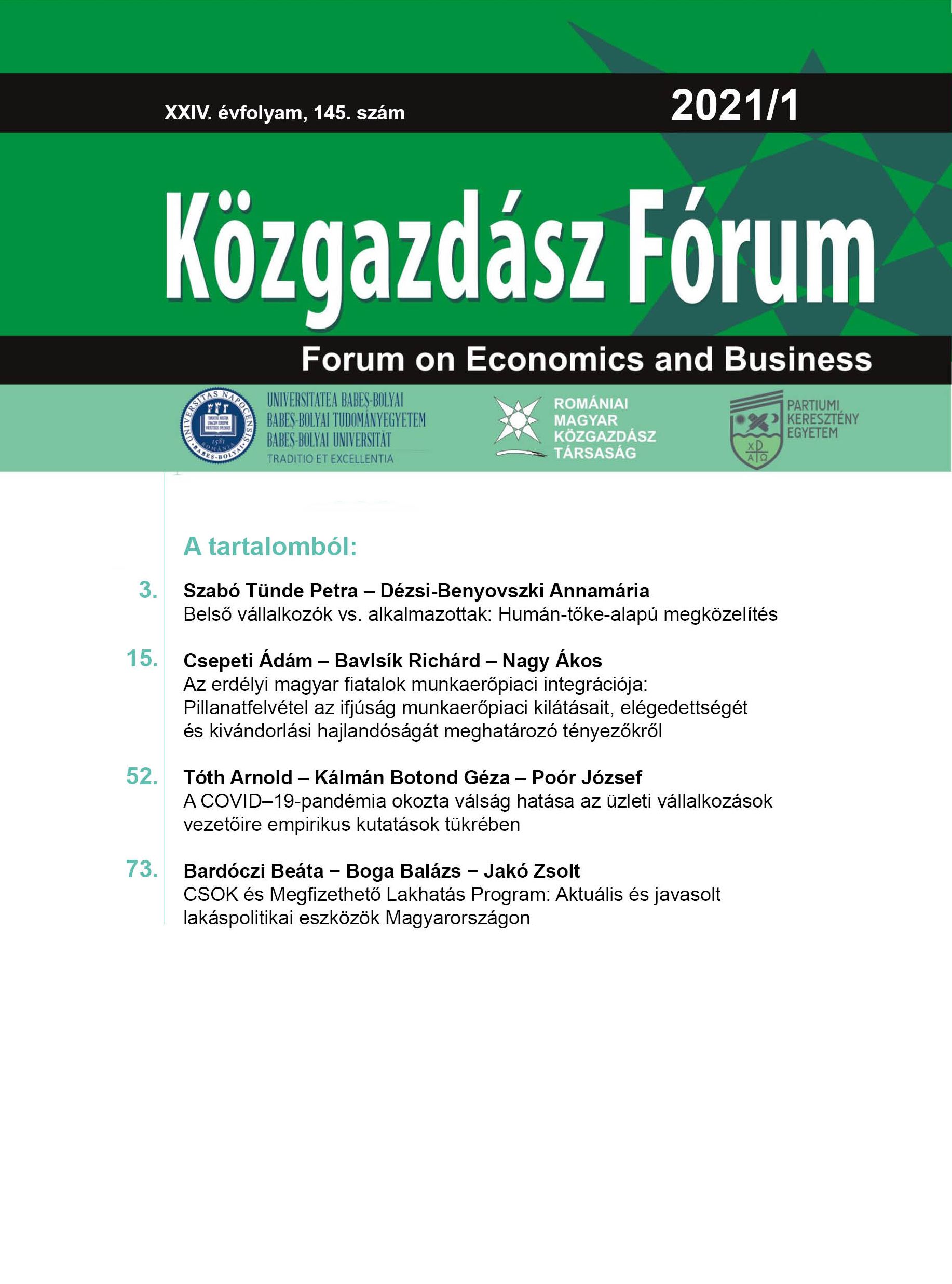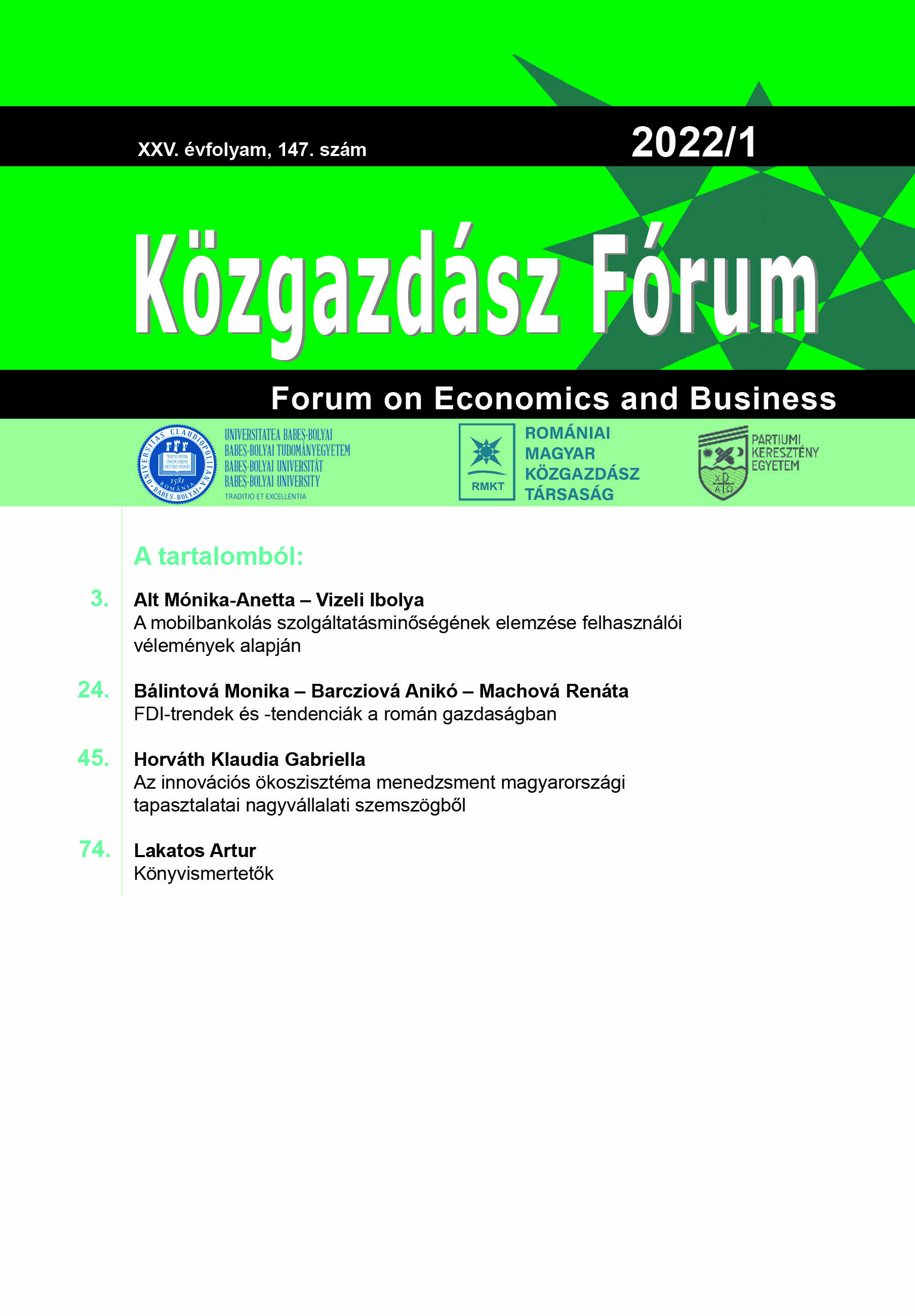 © Közgazdász Fórum | ISSN: 1582-1986
