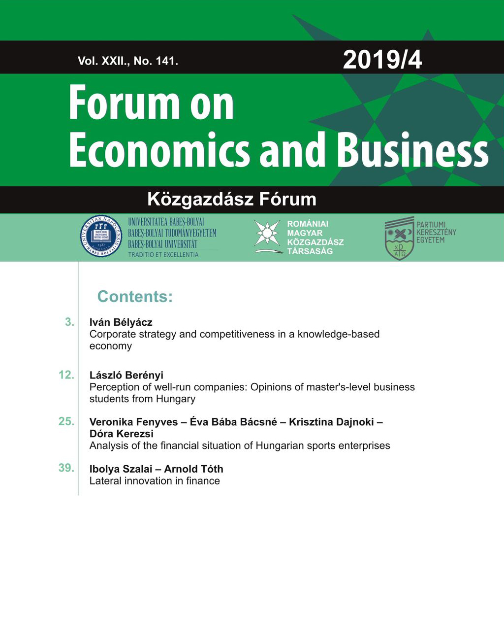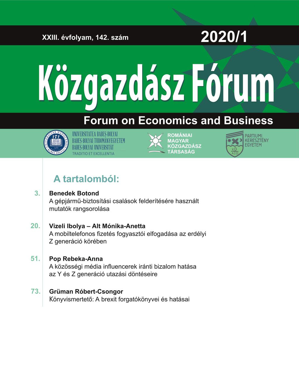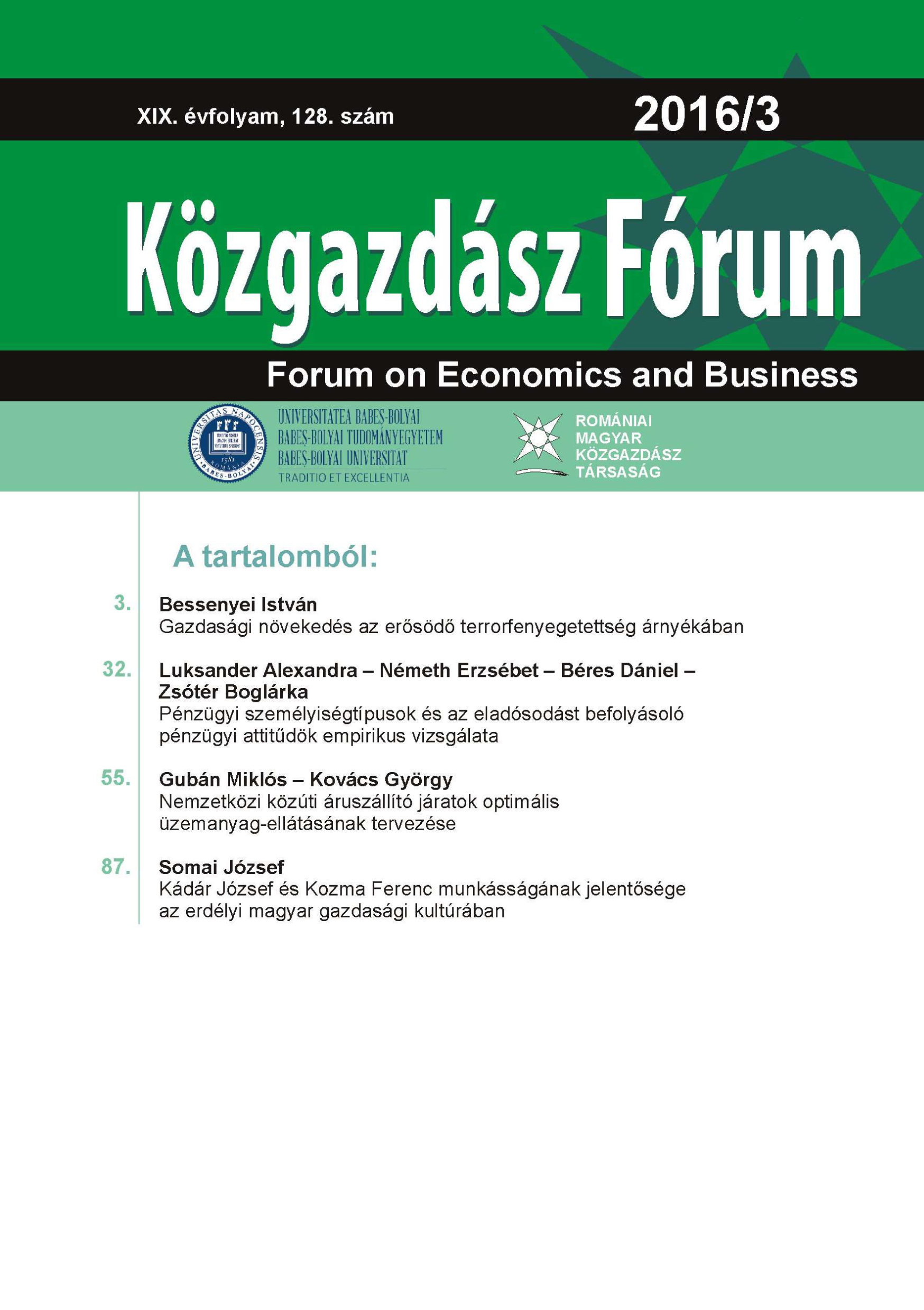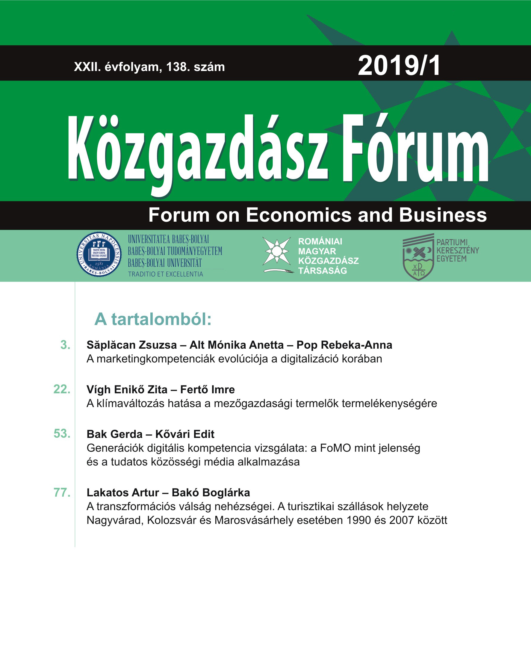 © Közgazdász Fórum | ISSN: 1582-1986